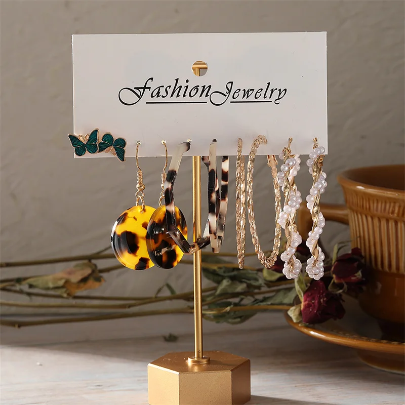 Набор винтажных серег с жемчугом, бабочкой, леопардовым принтом, дл...