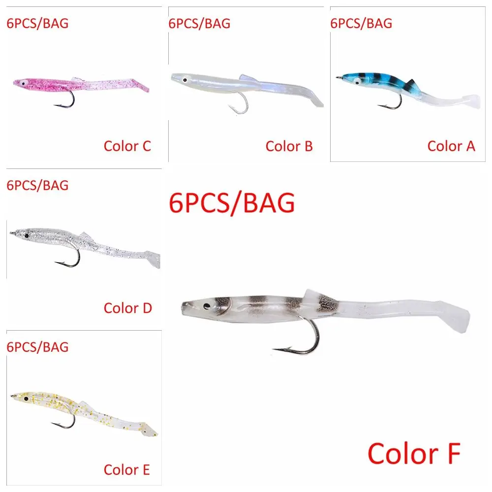 6 шт.компл. мягкие приманки для морского угоря 80 мм23 г, искусственная рыболовная приманка, рыболовная приманка с хвостом, песчаным угорем, искусственные приманки