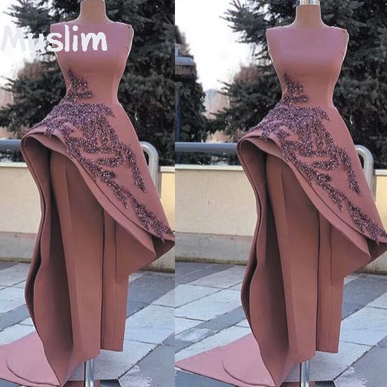 Элегантный пыльный розовый комбинезон, платья для выпускного вечера, нарукавник со шлейфом, брючный костюм 2022, мусульманское арабское вечернее платье с кружевом, женское вечернее платье