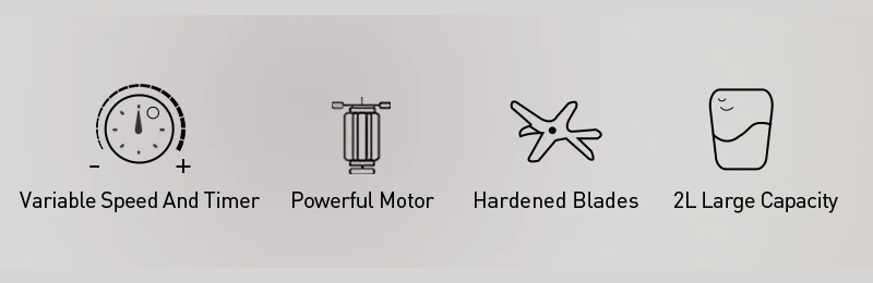 1. Как только вы получите блендер, пожалуйста, добавьте немного воды в контейнер, чтобы проверить, не запускайте его без чего-либо внутри, так как это плохо подходит для соединительной системы, не измельчать сухие ингредиенты более 1Минута.