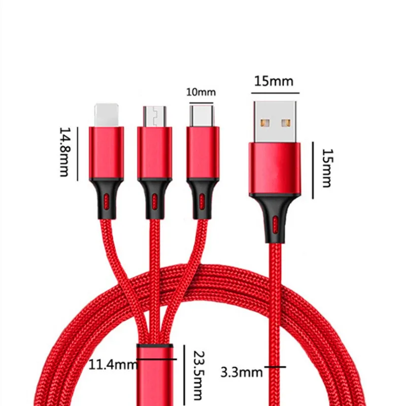 Высококачественный зарядный кабель 3 в 1 Micro USB Type C, мульти Usb-порт, зарядный шнур, внешний провод для Samsung, для ios