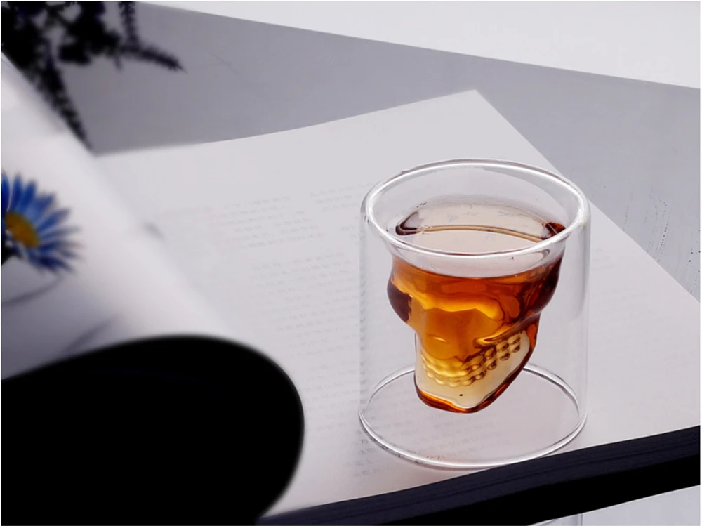 Прозрачная стеклянная чашка с черепом, двухсторонний бокал 25 мл дл...