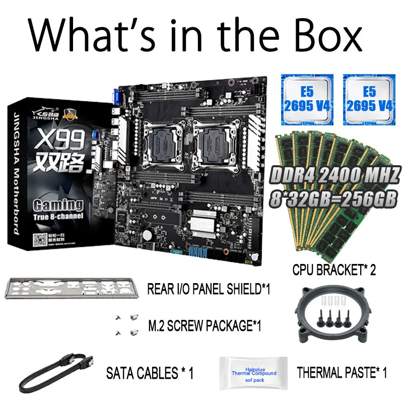 Комплект материнской платы JINGSHA X99, комплект материнской платы с двойным процессором Xeon E5 2695 v4 2 CPU s DDR4 8*32 = 256 ГБ Gigabit Ethernet VGA NVMe M.2, материнская плата Combo