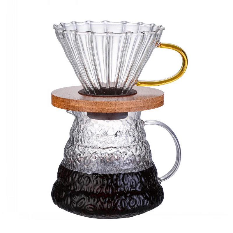 Кофейная капельница, кофейник V60, Стеклянная Воронка, капельная кофейная капучино, портативная чашка с фильтром, деревянный держатель, пивная кофейная посуда