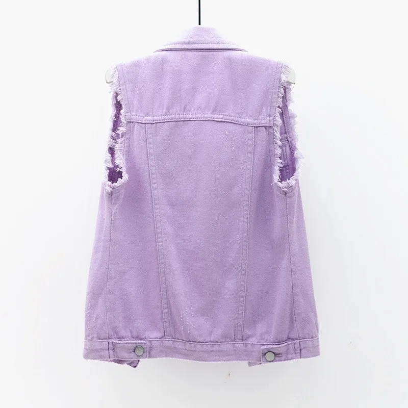 Новинка 2021, модный фиолетовый короткий джинсовый жилет, Женский Осенний Повседневный однобортный джинсовый жилет, тонкая джинсовая куртка без рукавов