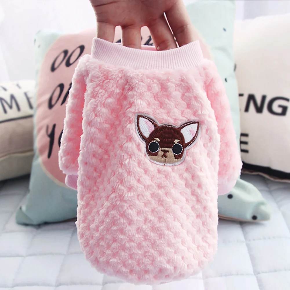 Одежда для собаки чихуахуа, вязаный флисовый джемпер с вышивкой, зи...