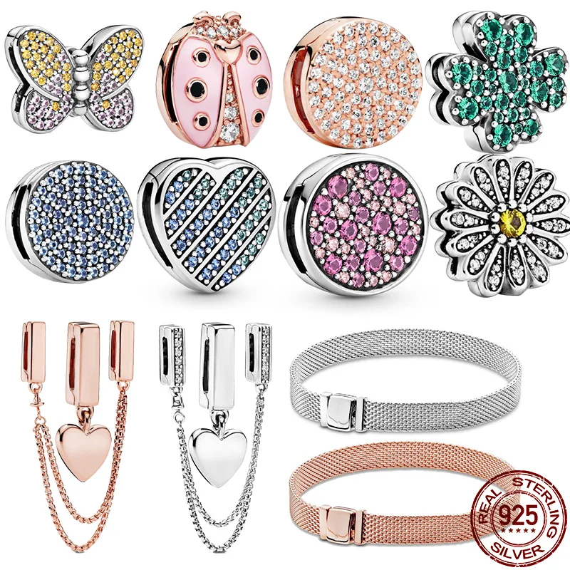 amuletS925 encantos cor prata diy reflexions encantos clipe fixo caber pandora pulseira cor prata s925 original