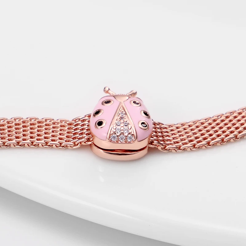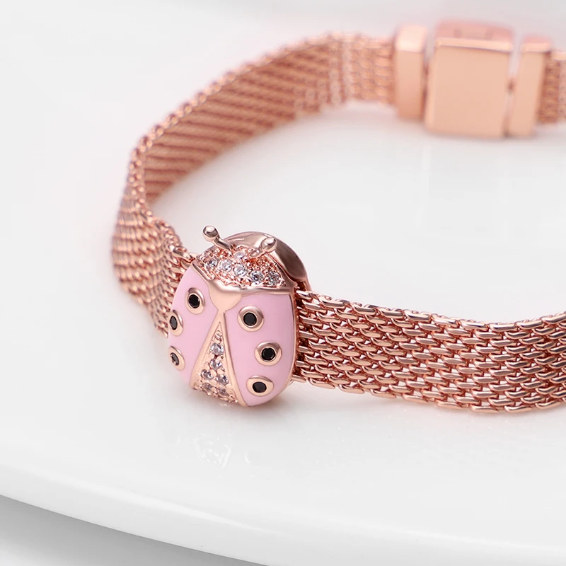 Подлинные серебряные бусины 925 пробы отражение розовый Божья коров...