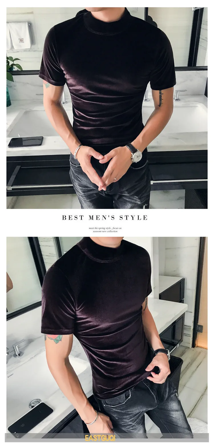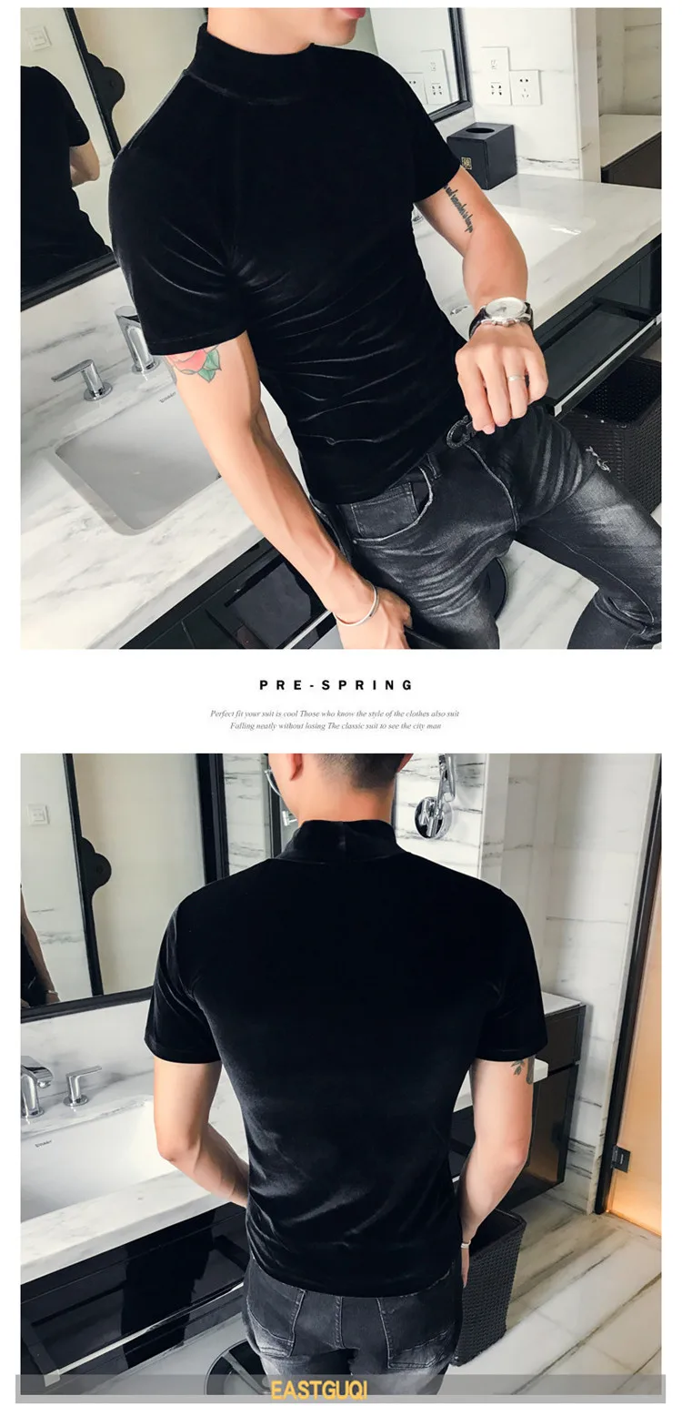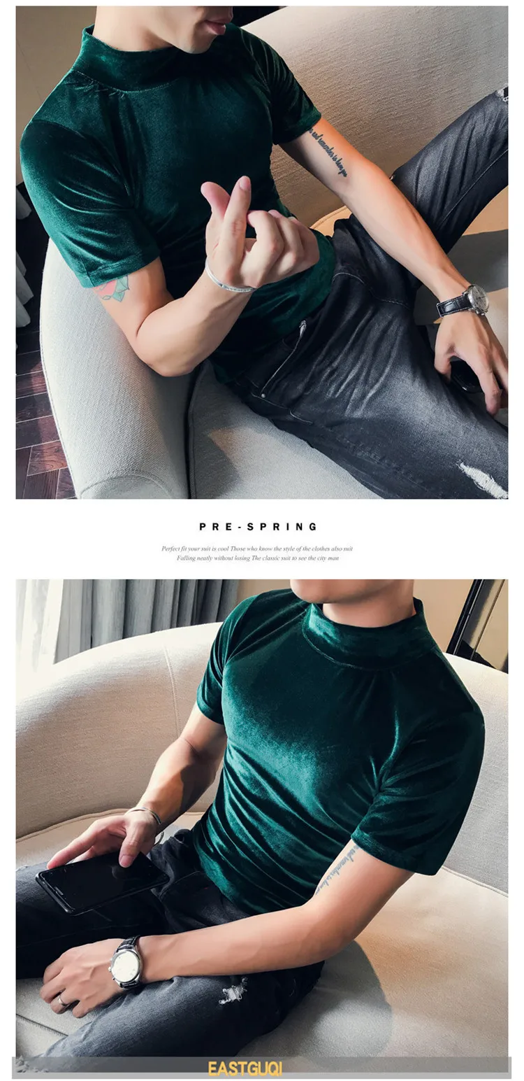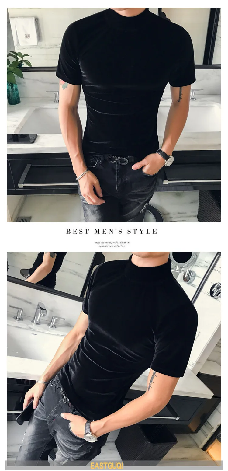Роскошная мужская футболка с воротником хомут, бархатная однотонная облегающая футболка, однотонная мужская Весенняя облегающая футболка, 4 цвета, Мужская футболка
