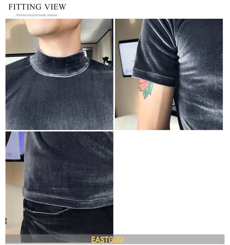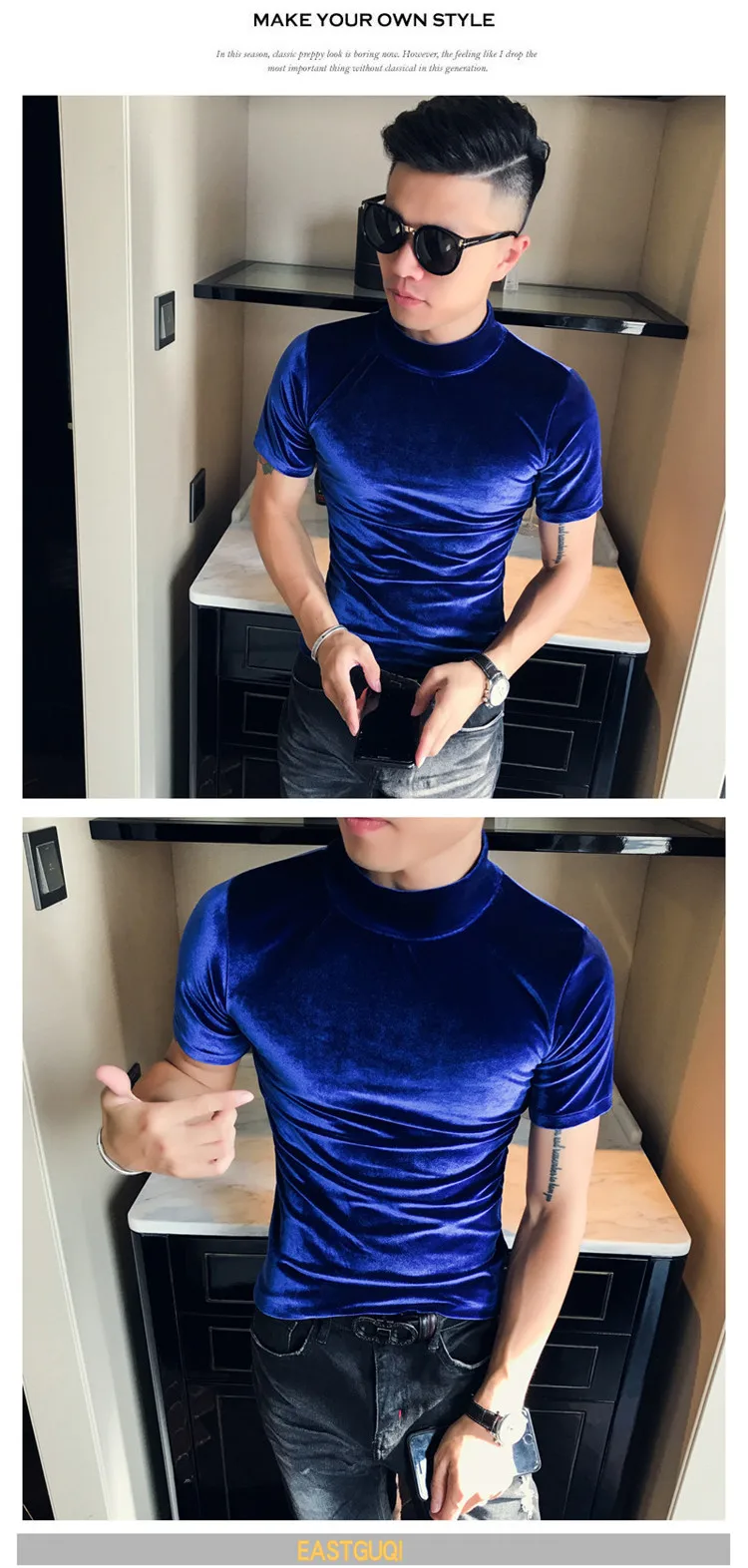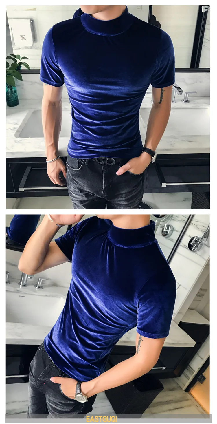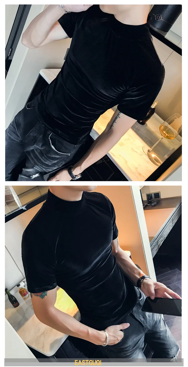 Роскошная мужская футболка с воротником хомут, бархатная однотонная облегающая футболка, однотонная мужская Весенняя облегающая футболка, 4 цвета, Мужская футболка