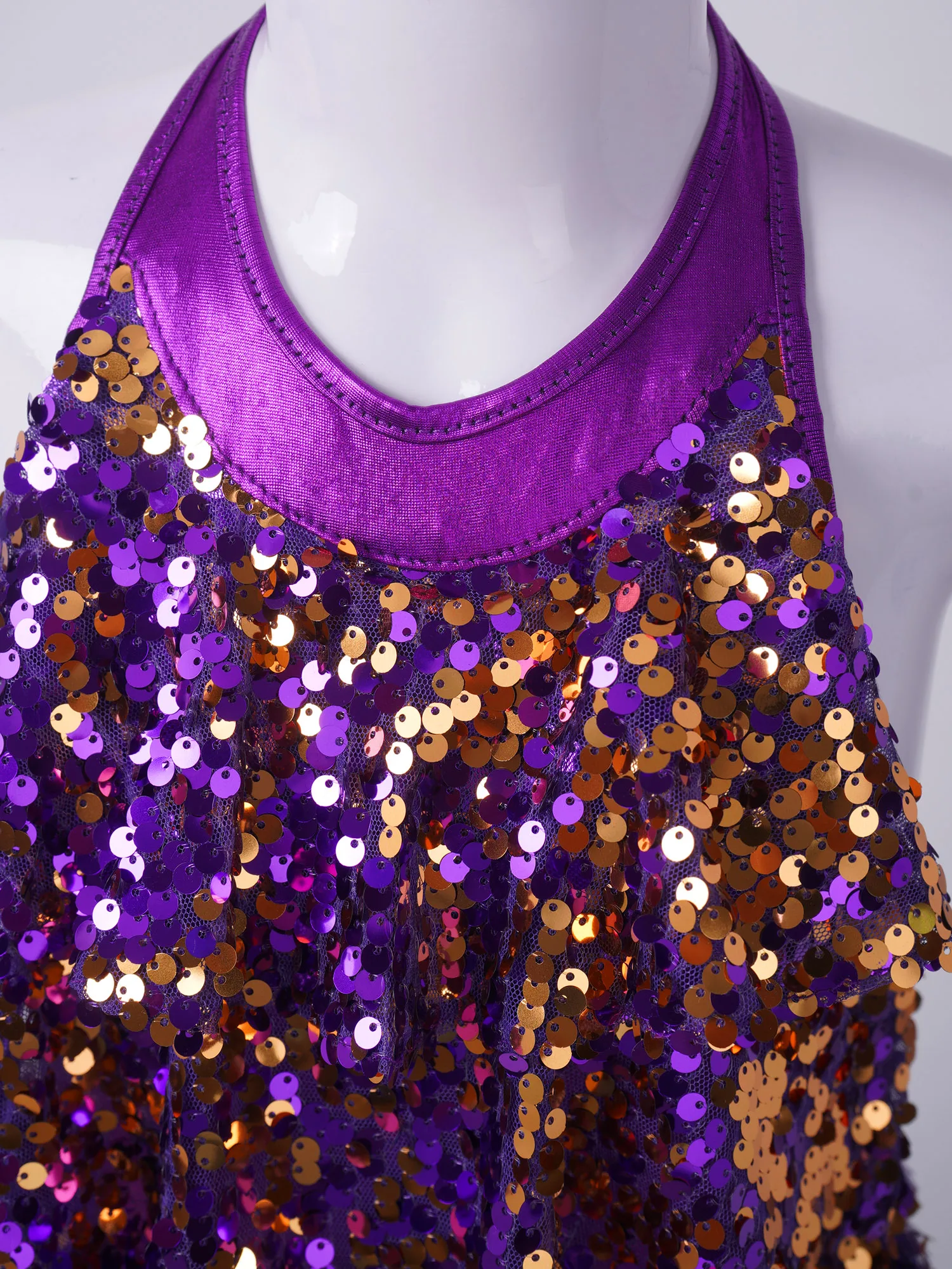 Детский танцевальный костюм для девочек, танцевальный костюм с блестящими блестками и лямкой на шее, комбинированное платье, современная одежда для джаза и латиноамериканских танцев для выступлений на сцене