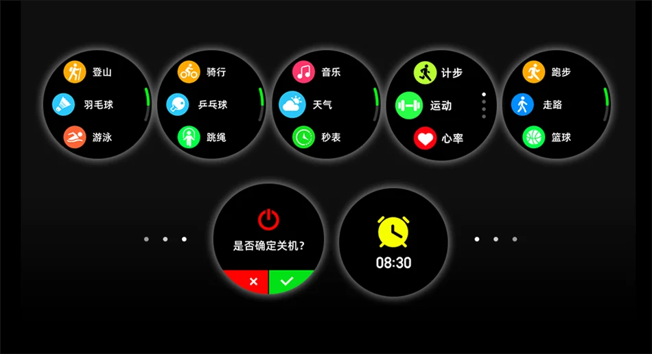 Шагомер, несколько режимов упражнений, пульс, кровяное давление, кислород в крови, мониторинг сна, напоминание о сидячем положении, напоминание о звонках, напоминание о сообщениях, секундомер, управление музыкой, управление камерой, защита от потери, будильник, погода, приложение dial push, поддержка обновления OTA