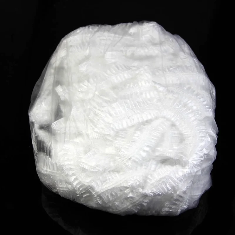 Одноразовые пластиковые водонепроницаемые головные уборы 100 шт., головной убор для окрашивания волос в отеле, прозрачные пластиковые головные уборы для салона красоты