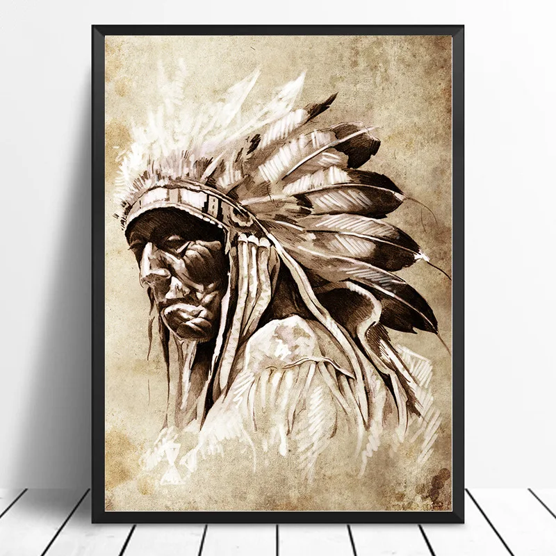 Черно-Золотая портретная картина в американском, индейском стиле, холст, художественные принты, Скандинавская Настенная картина для гостиной, декоративный плакат