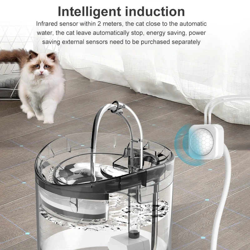 Автоматический фонтан для воды для кошек на 1,8 л с краном, диспенсер для воды для собак, прозрачный фильтр, с датчиком яркости, питьевой воды