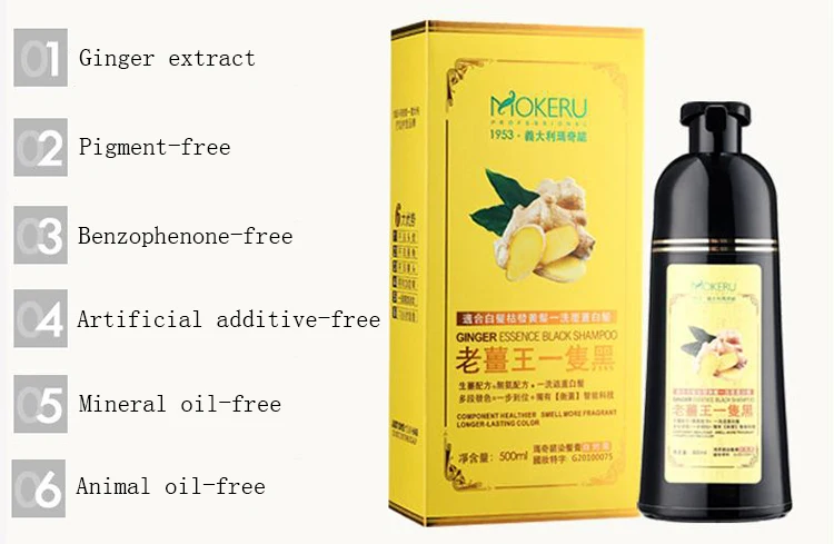 Стойкий натуральный экстракт имбиря, краска для черных волос, цветной шампунь, красота, питание, длительный уход для мужчин, женщин, мужчин, домашний салон