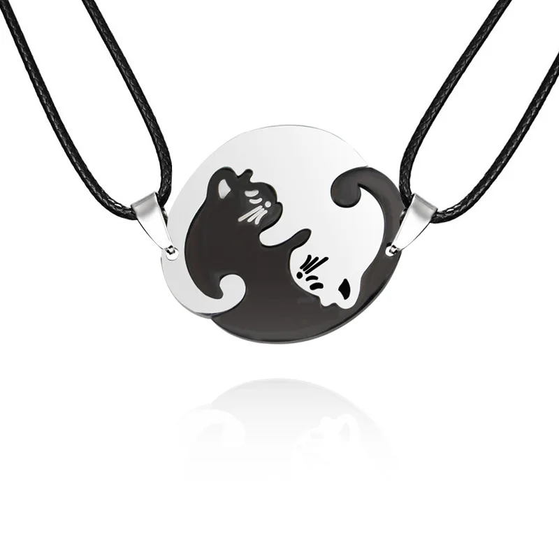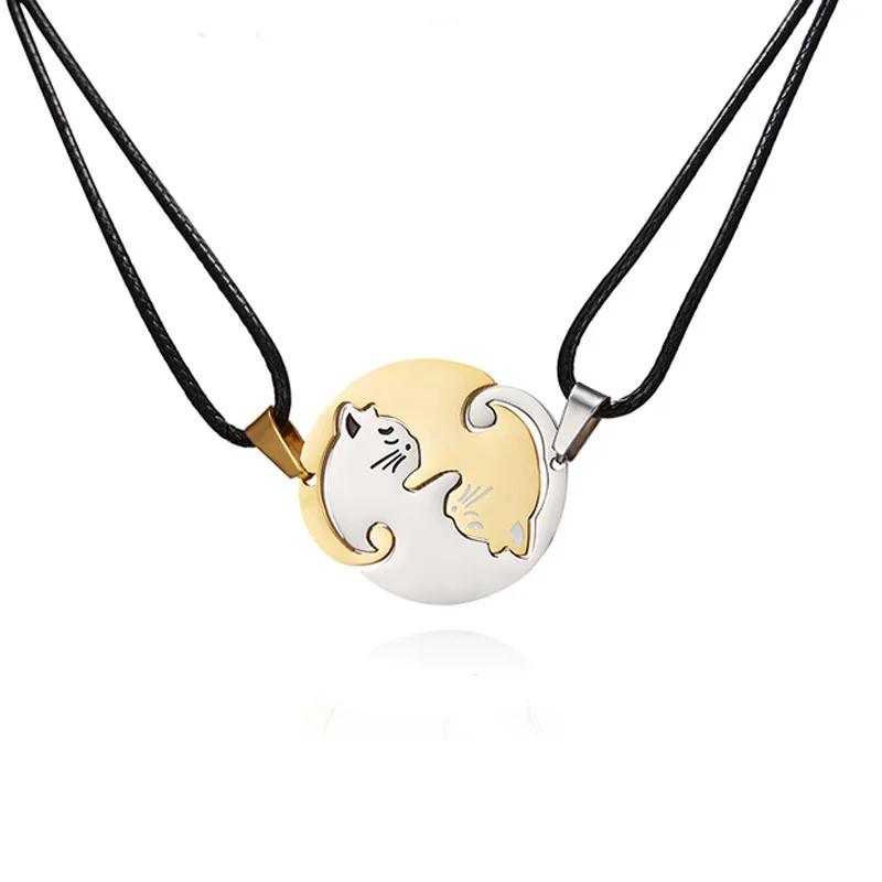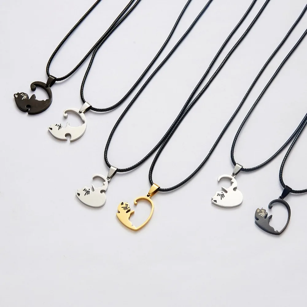 Ожерелье с подвеской в виде пары влюбленных кошек Милая Черная Золотая кошка два в одном подарки на день Святого Валентина