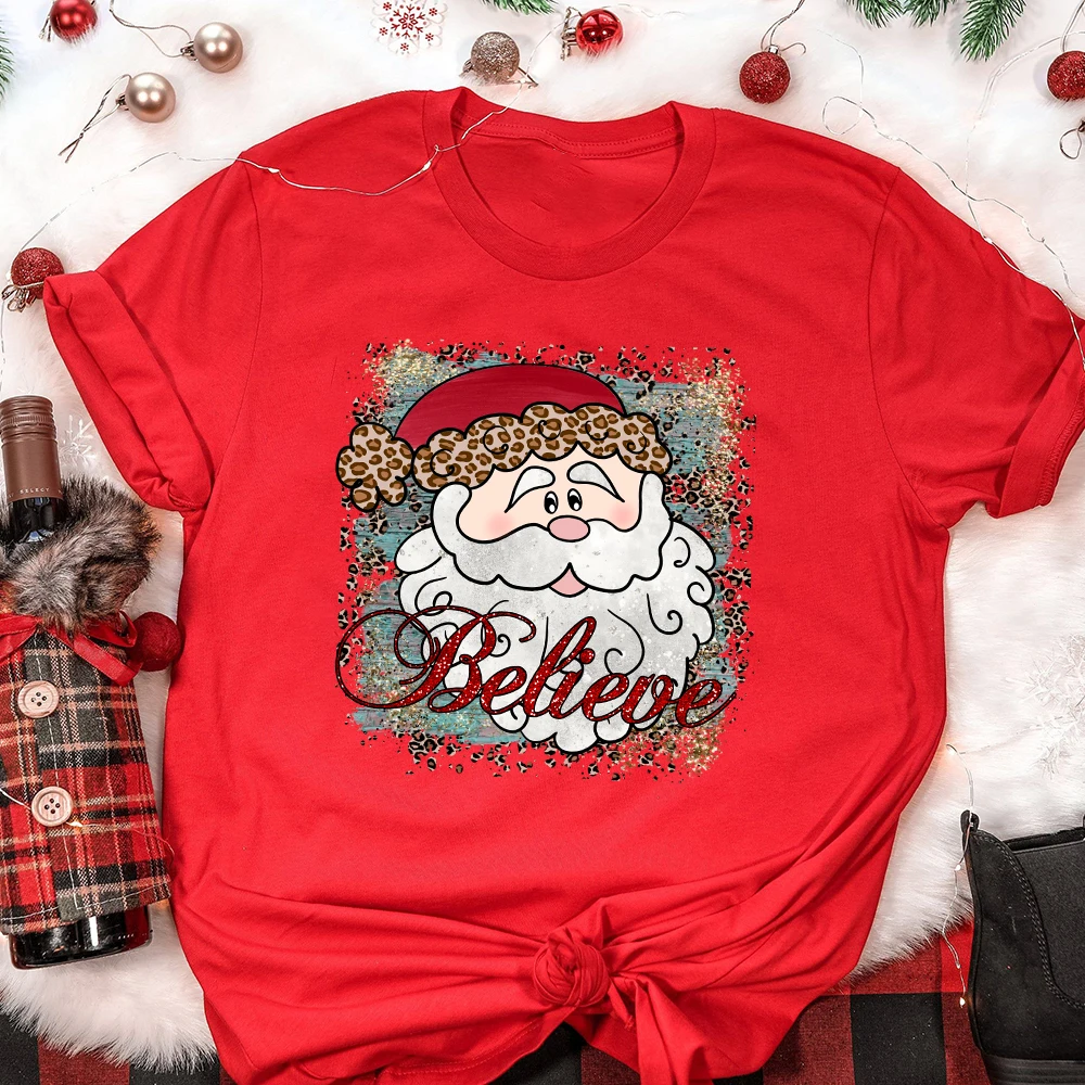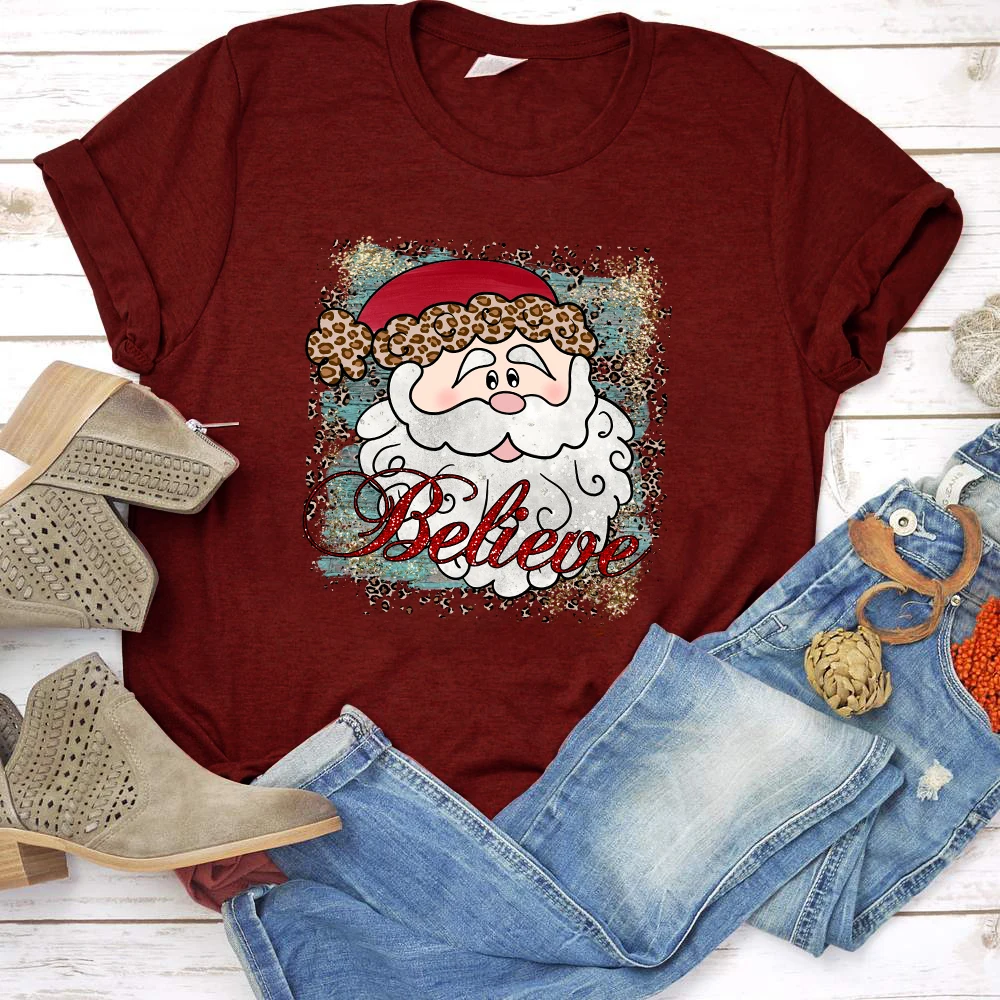 Женская футболка с коротким рукавом и принтом Санта-Клауса