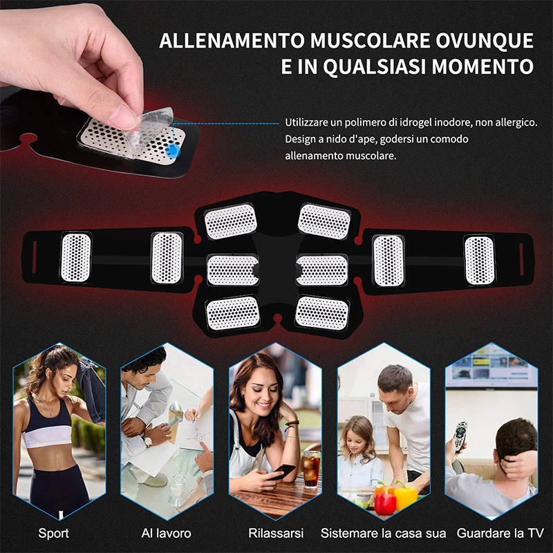 1. Технология EMS: через текущее стимулирование, непосредственно посылает сигналы мышцам для продвижения мышечного движения. Все, что вам нужно сделать, это поместить эти коврики в ваше тело и позволить им тренировать мышцы.