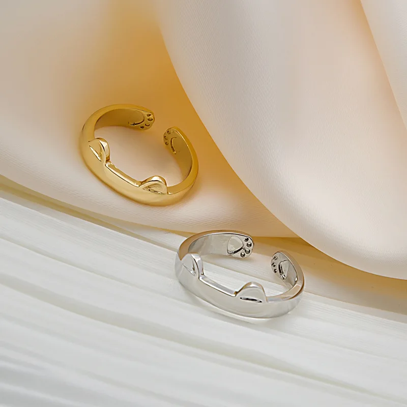 Корейская версия, открытые парные кольца с котом для женщин, тренд 2021, новинка, регулируемое медное лаконичное ухо, милая лапа, девочка, женское ювелирное изделие для вечеринки