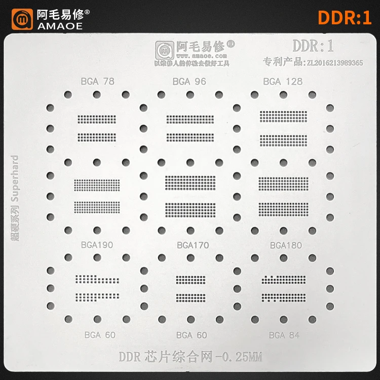 Трафарет для реболлинга Amaoe DDR1 BGA для BGA190BGA170180BGA789612...