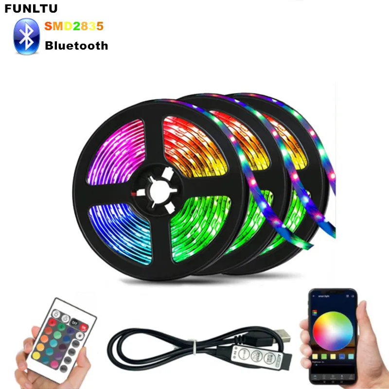Светодиодная лента RGB 2835 с Bluetooth управлением USB гибкая лампа 5 в ленточный диод для праздничной комнаты Luces компьютерный ТВ стол