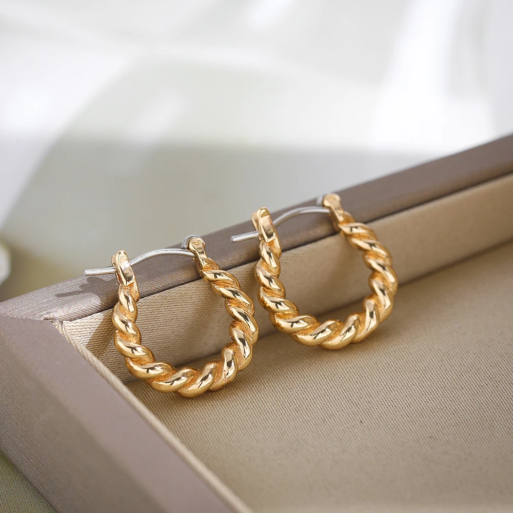 Классические витые металлические геометрические круглые серьги-кольца для женщин, искажения, Переплетенные золотые маленькие круглые серьги, модные украшения