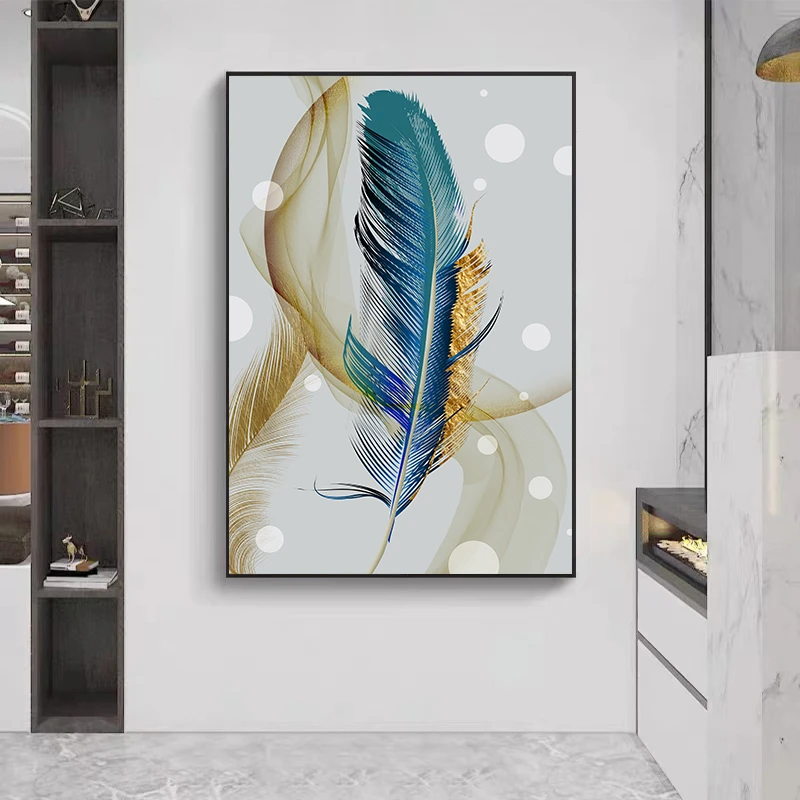 Абстрактная Золотая фольга, перо, холст, картины, Скандинавская стена, фотография современной гостиной, спальни