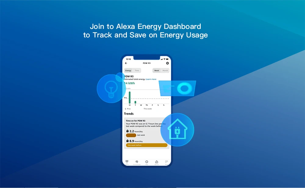 POWR3 поддерживает Alexa smart energy, которая помогает вам экономить энергию.Вы можете централизованно просматривать общее или индивидуальное энергопотребление устройства на приборной панели.