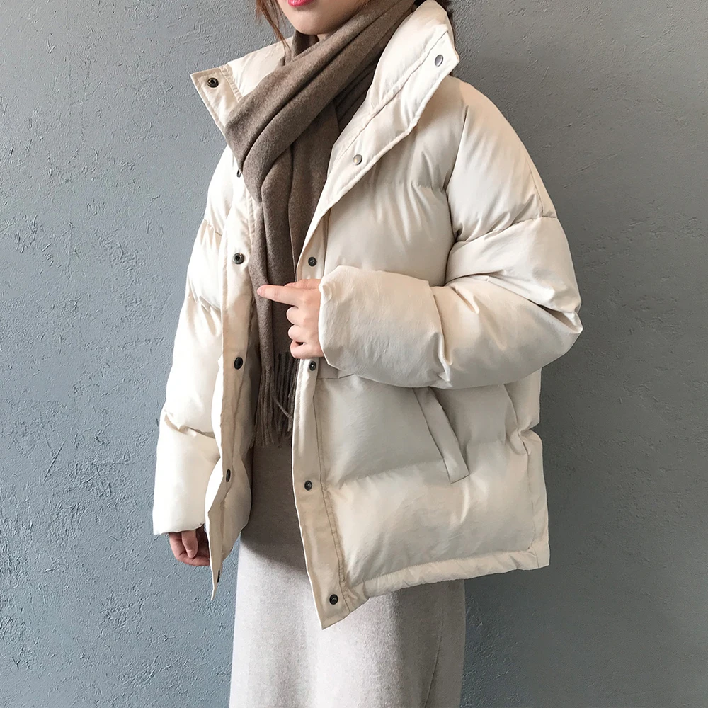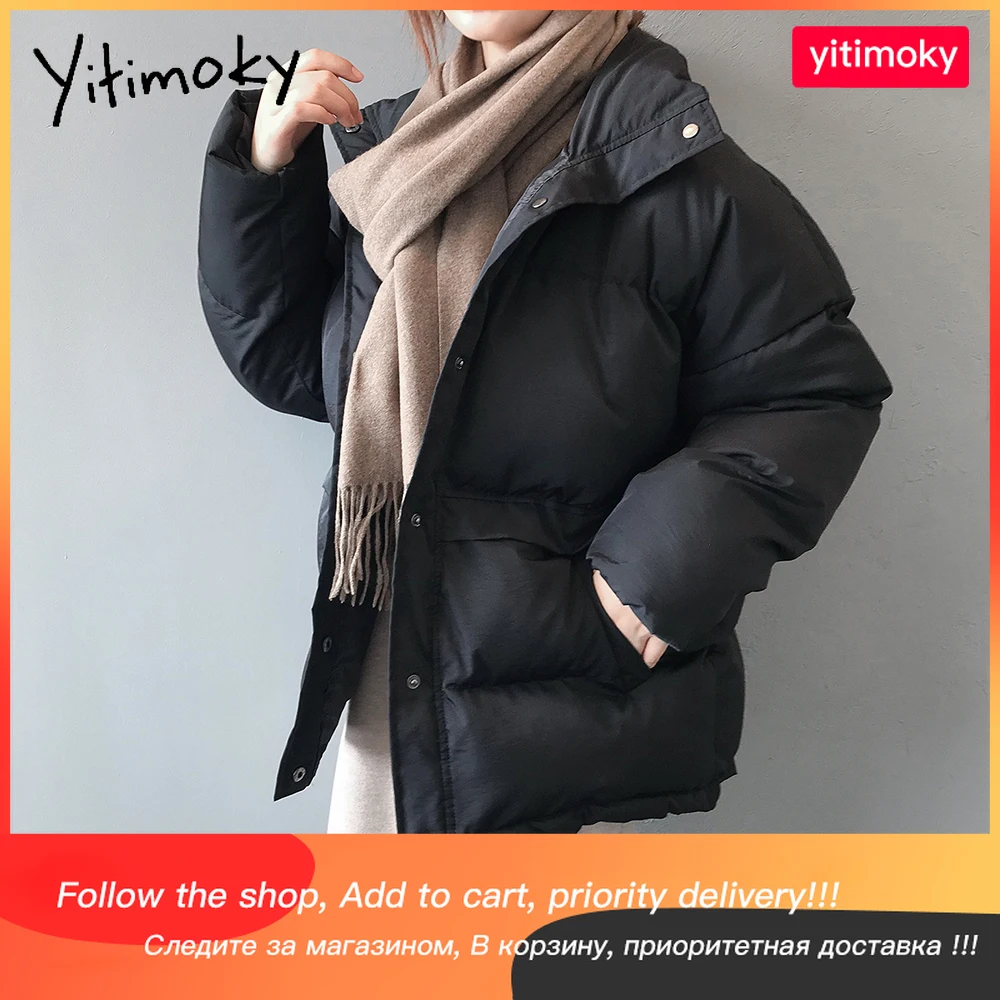 Куртка Yitimoky женская с воротником-стойкой, повседневный пуховик из хлопка, теплая верхняя одежда с карманами, зимняя короткая парка, черный бежевый цвет