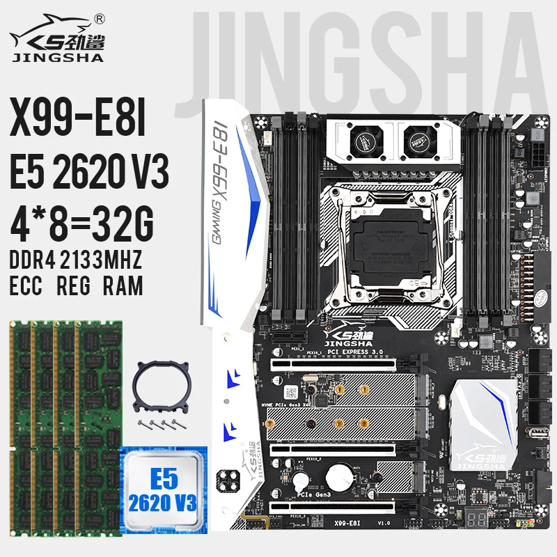 Комплект материнской платы JINGSHA X99 E8I с вентилятором E5 2620V 3 CPU 4*8GB DDR4 2133 ECC REG RAM SSD M.2 NVME SATA Поддержка Turbo boost