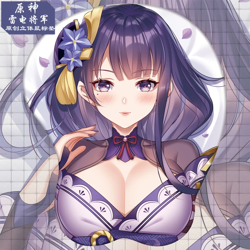 Игровой коврик для мыши Genshin Impact Raiden Shogun Beelzebul 3D, мягкий гелевый эргономичный коврик для мыши из лайкры с поддержкой запястья, подарки