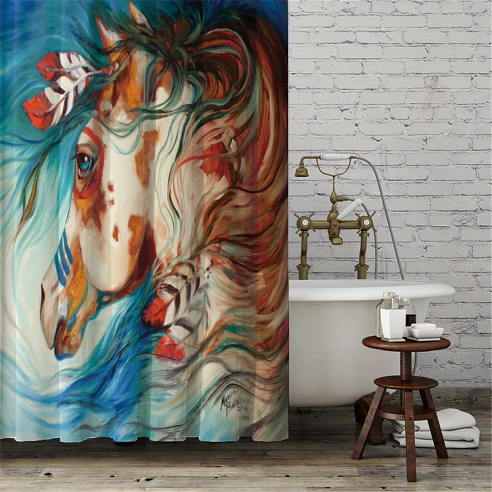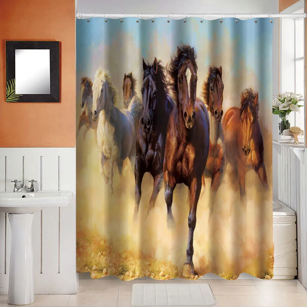 Занавеска для душа из полиэстера с рисунком бегущей лошади, обезьян...