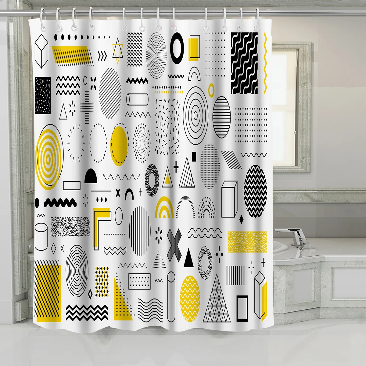 Занавеска для душа из полиэстера, черно-белая, водостойкая