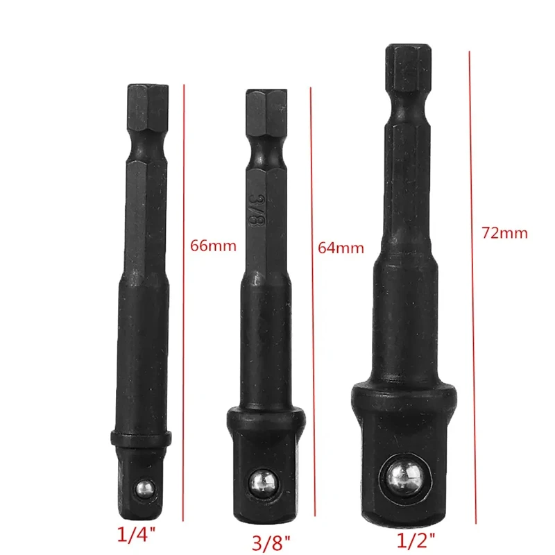3 шт. удлинитель (квадратная головка х длина): 1/4 "x66мм, 3/8" x64мм, 1/2 "x72мм