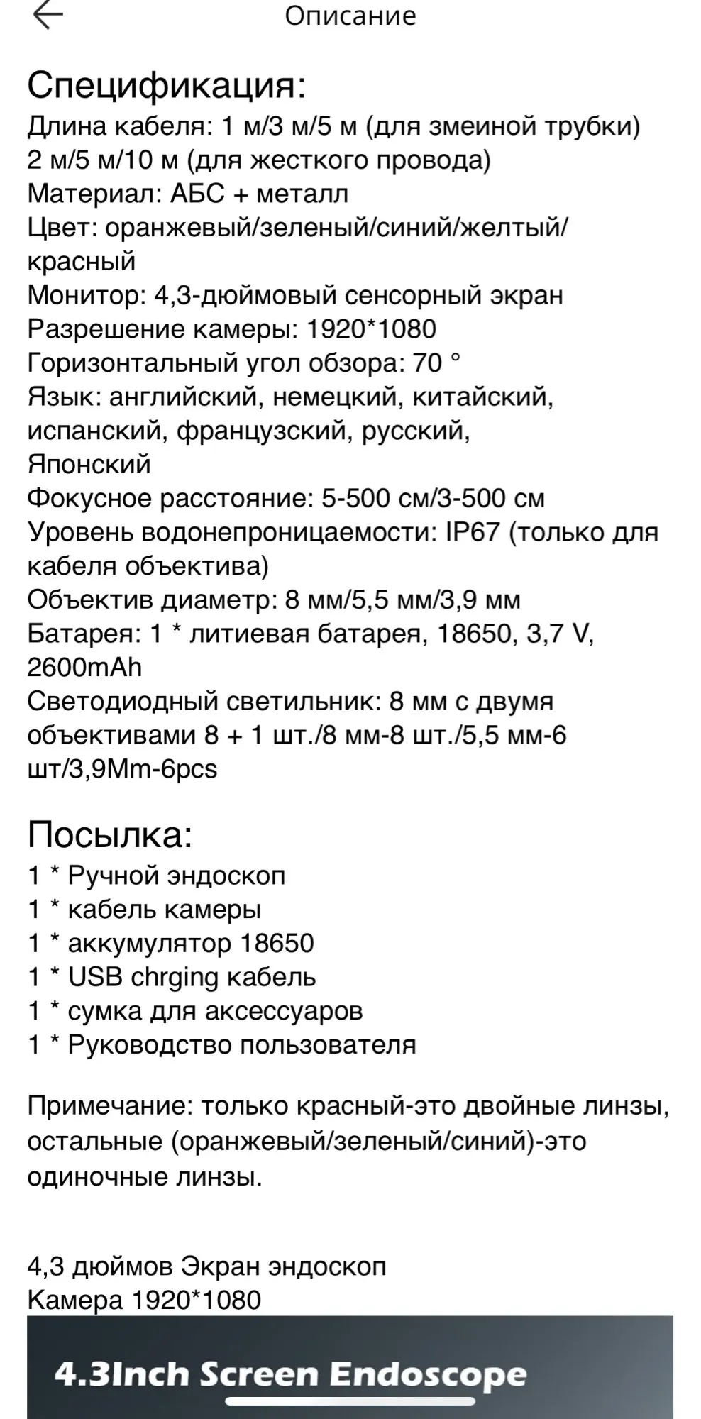 бюджетный эндоскоп фокус от 3 х сантиметров, качество хорошее.