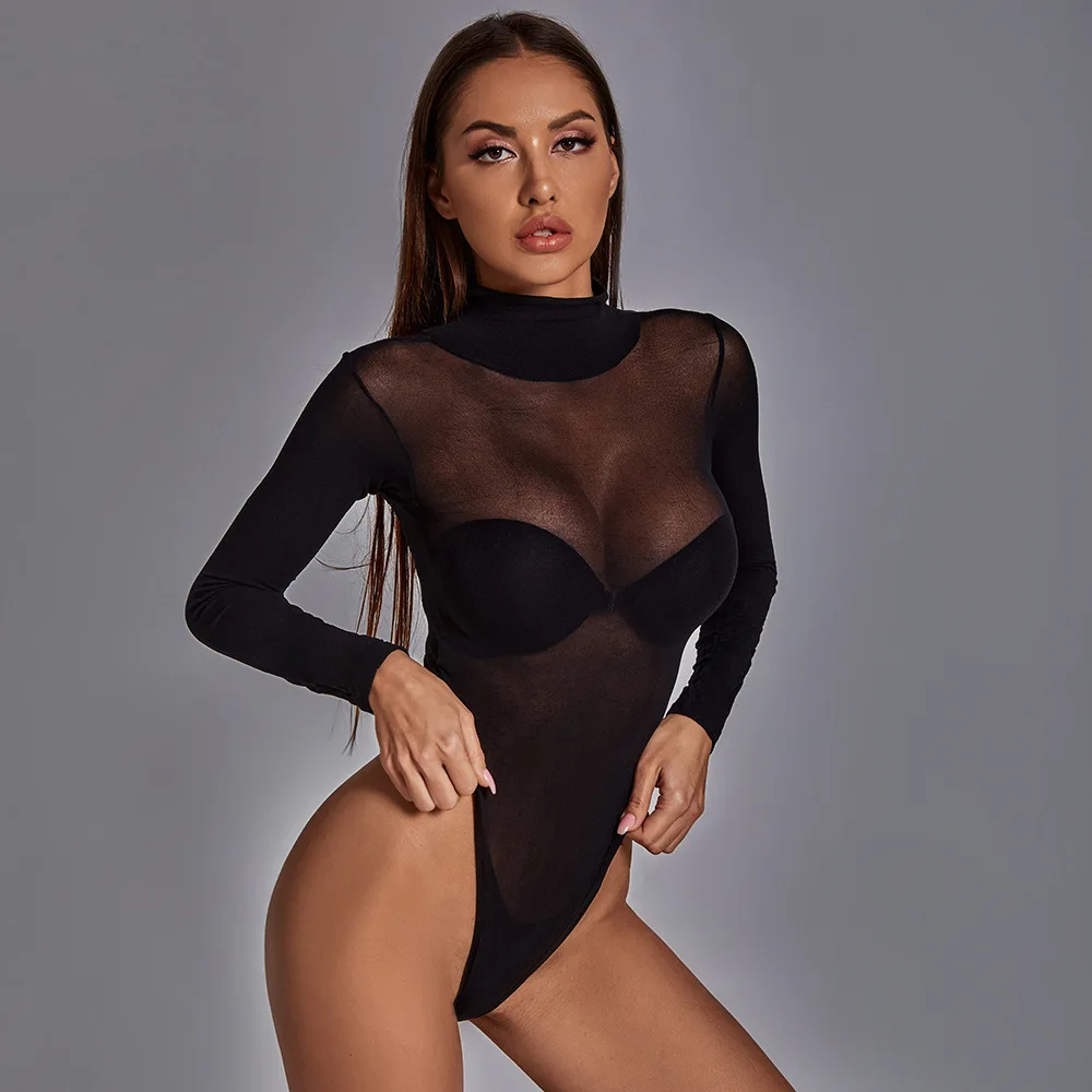 Сексуальное женское прозрачное боди из спандекса с открытой промежн...