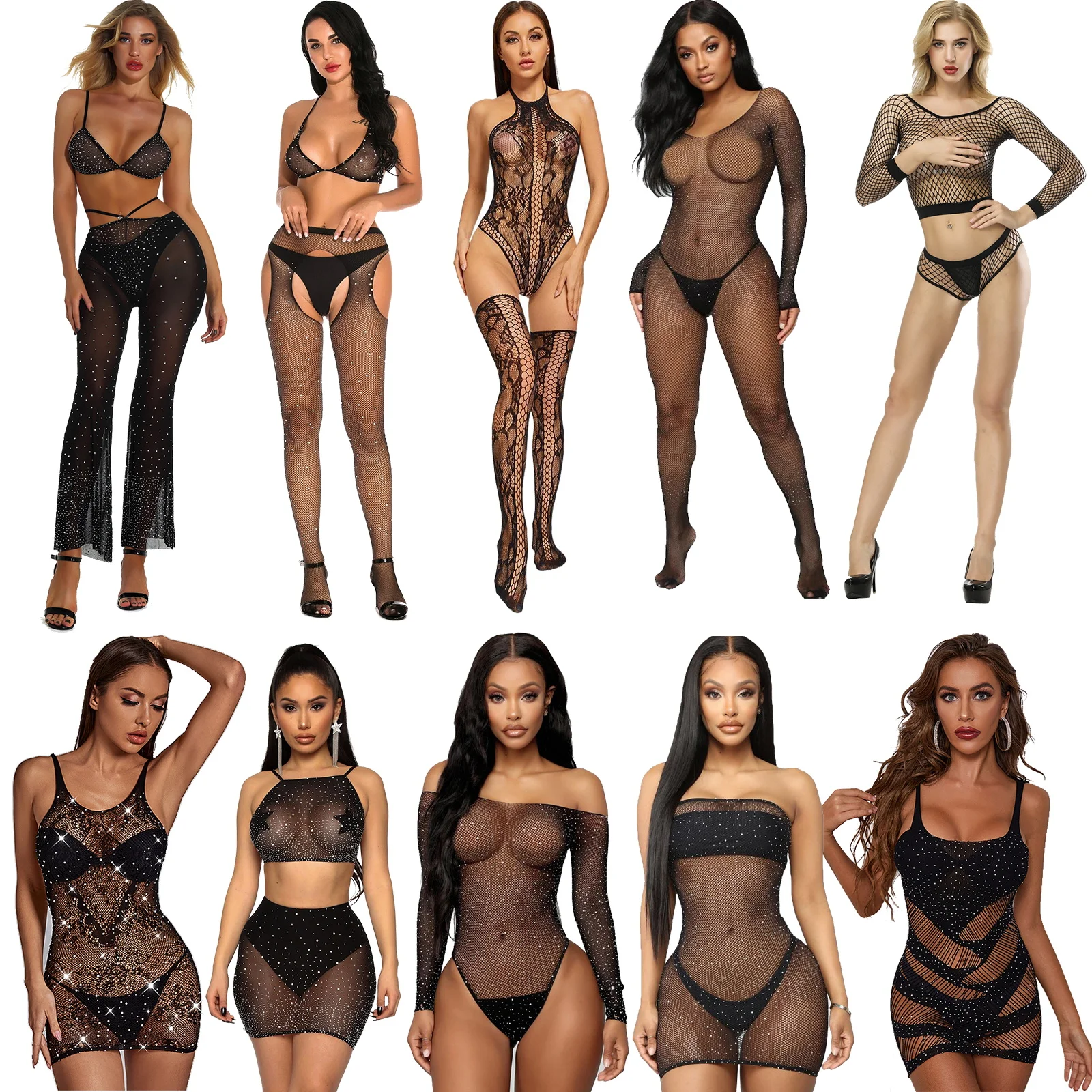 Размера плюс Стразы, блестящие сетчатые чулки, прозрачные обтягиваю...