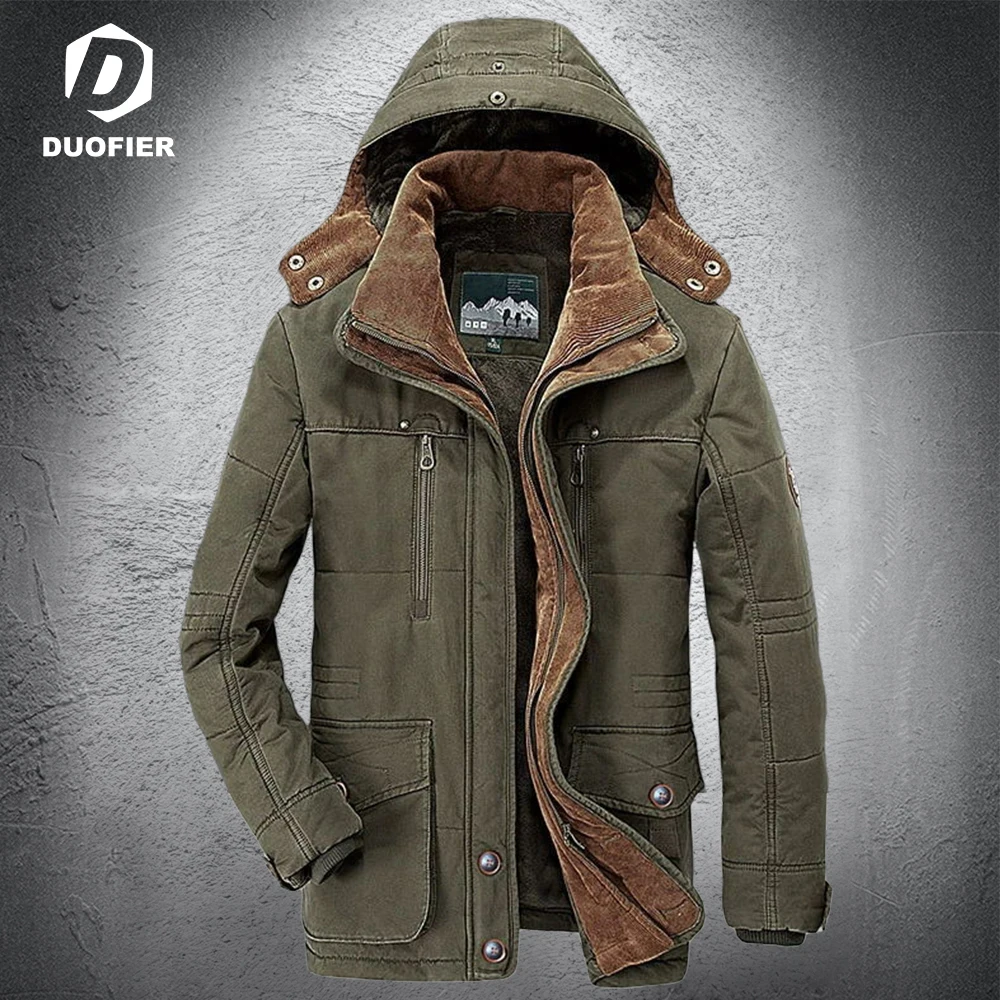 Мужская зимняя куртка 2022, парка средней длины, бархатные толстые теплые куртки со множеством карманов, однотонные парки, Мужское пальто, одежда большого размера