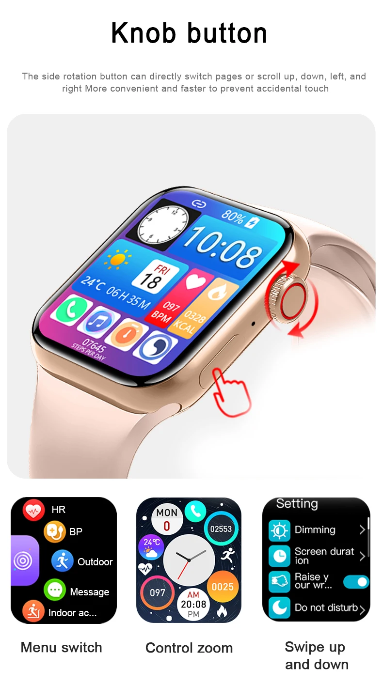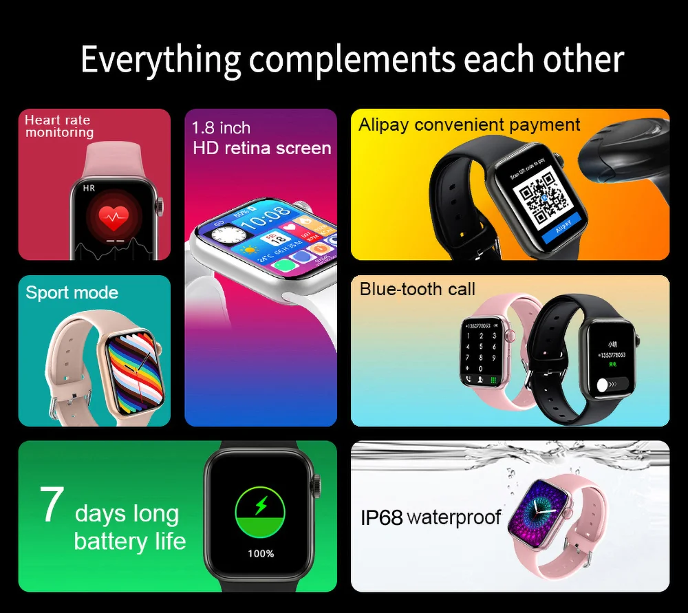 1. Следите за своим здоровьем:Трекер сна, напоминание о сидячем положении, пульс/кровяное давление/мониторинг кислорода в крови.2. Хороший помощник для тренировки:Шагомер, сожженные калории, расстояния, спортивные режимы.3. Хороший помощник для повседневной жизни:При подключении к телефону: Синхронизация уведомлений (напоминание о входящих звонках, сообщения и т. Д.), музыка bluetooth и т. Д.Приложение с раздельным экраном, 3d-динамическим циферблатом, погодой, поднятием запястья, будильником, секундомером, поиском моего устройства, калькулятором и т. д.
