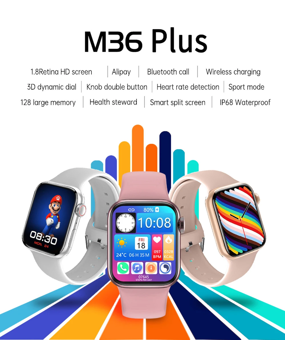 Смарт-часы LYKRY M36plus, экран 1,8 дюйма HD Retina, Беспроводная зарядка