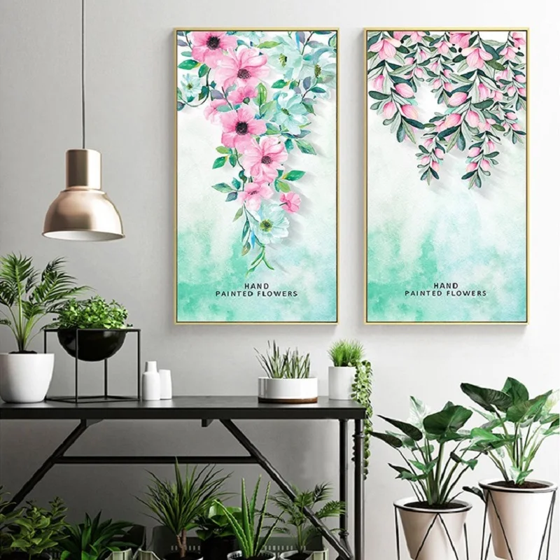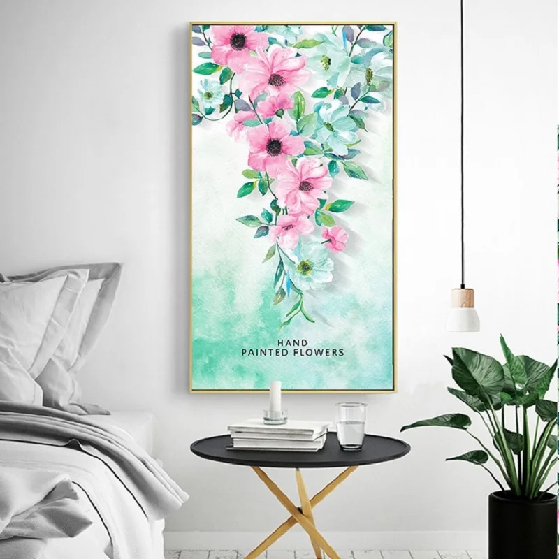 Абстрактная картина на стену, розовые цветы, картина маслом, скандинавский постер на холсте, принты для гостиной, спальни, коридора, украшение