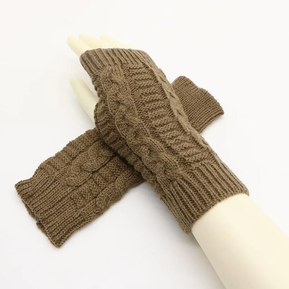 Женские длинные перчатки с вышивкой, вязаные теплые перчатки без пальцев для зимнего катания на лыжах, кемпинга, верховой езды, теплые вязаные рукавицы, велосипедное снаряжение