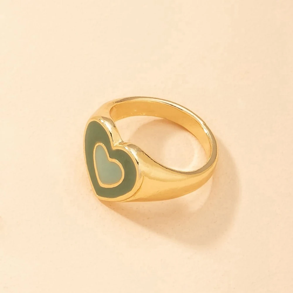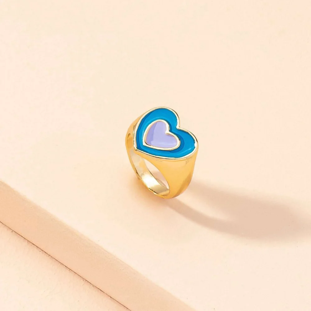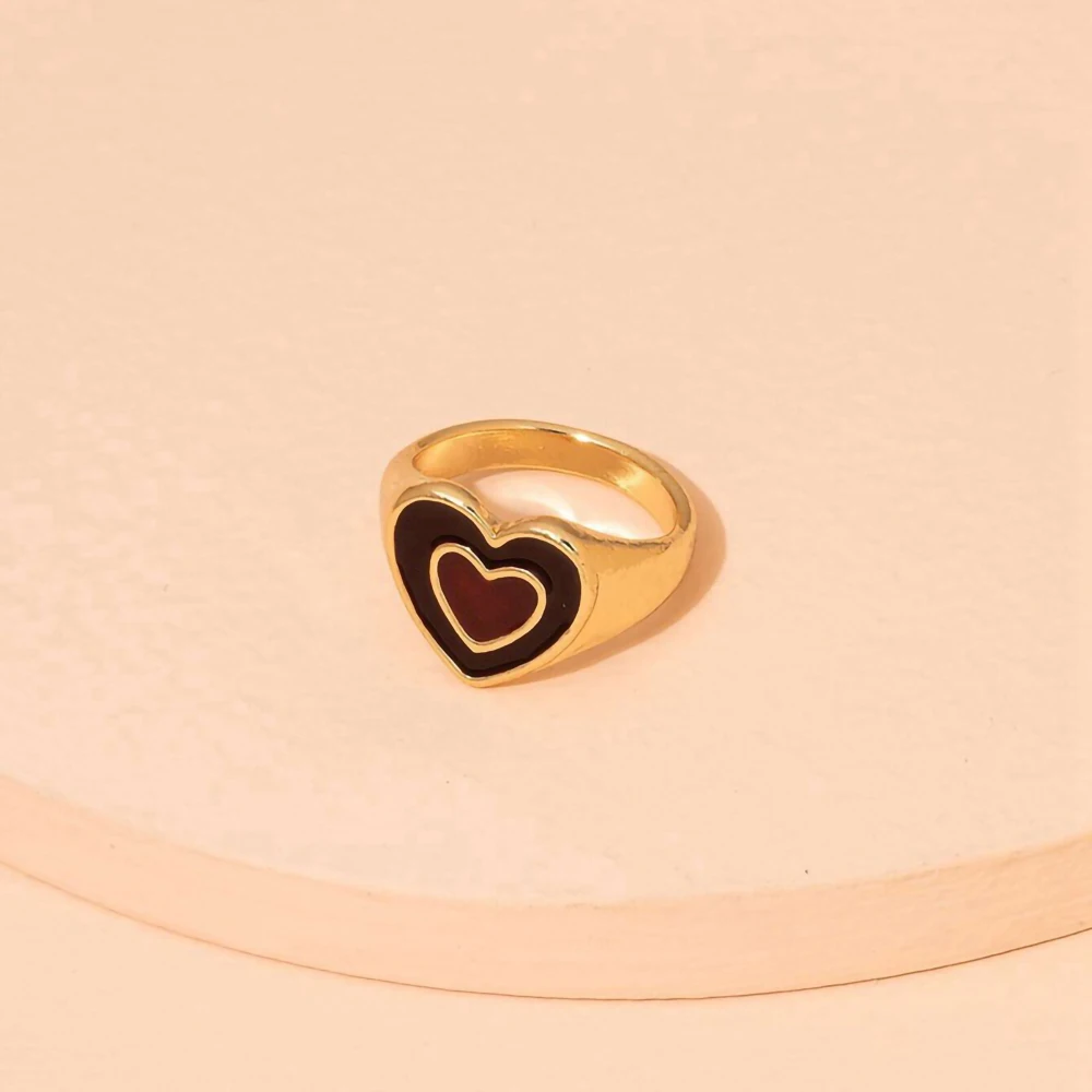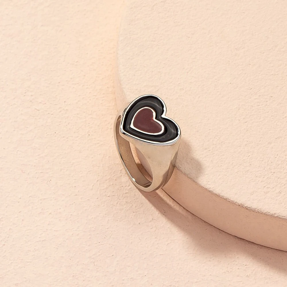 Love Ring Sweet Heart-Shaped Personality RingsRetro Harajuku Style Temperament Jewelry All-Match Gift
