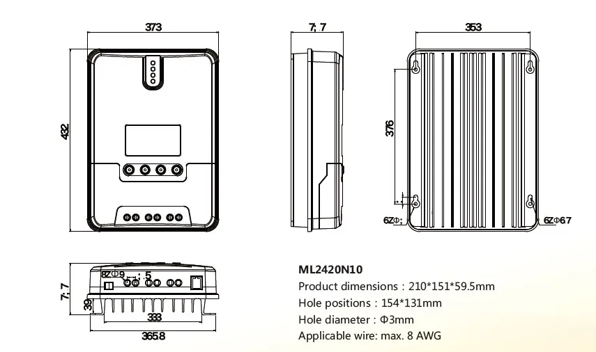 ПоддержкаСвинцово-кислотные батареи/литиевые батареи.Встроенный датчик температуры. Протокол Modbus.