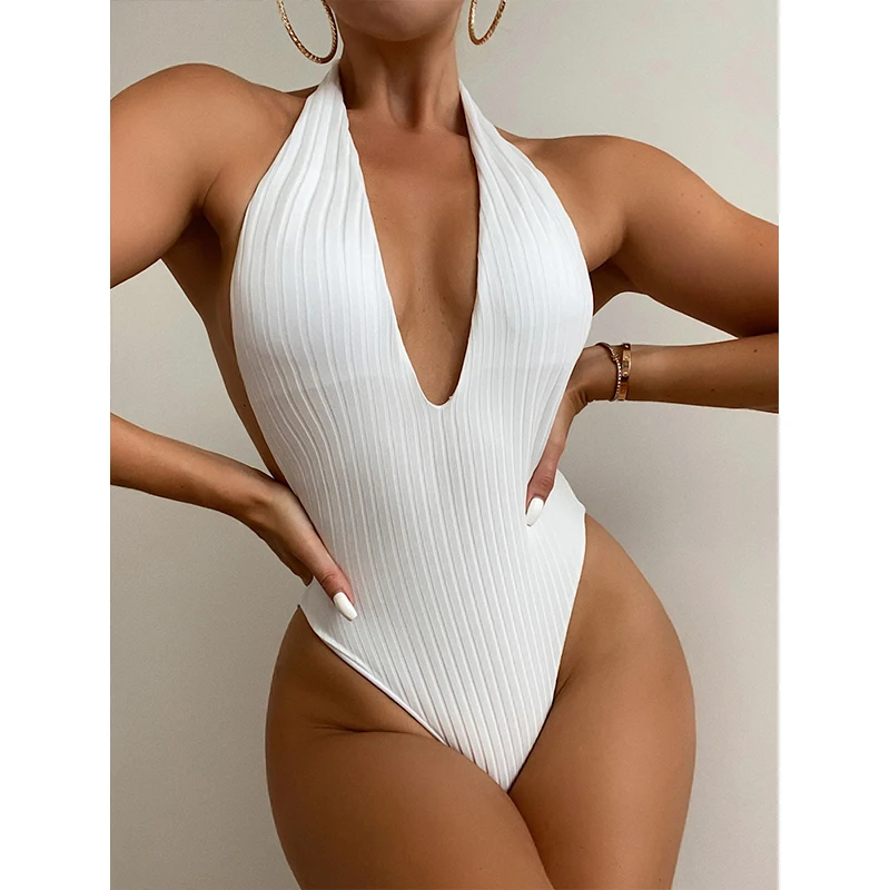 Белый цельный купальник Женская ребристая купальные костюмы сексуальные купальные костюмы V-Neck conjunto, с милыми лисами, biquinis trajes de Баньо mujer 2022