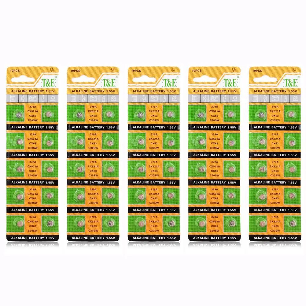 Щелочные батарейки AG0 LR521 LR 1,55, 50 шт., 521 в, SR63 LR69 379A SR521SW D379 AG 0 для часов, часов, игрушек