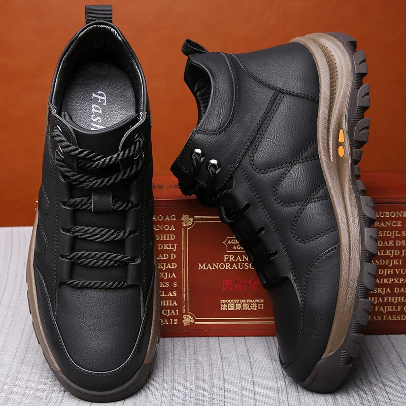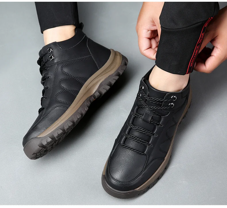 Мужские ботинки из натуральной кожи, на толстой подошве, с плюшевой...