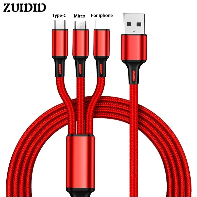 3 в 1 USB-кабель для IPhone, быстрое зарядное устройство, зарядный кабель для телефона Micro USB, Type C, Xiaomi, Huawei, Samsung, зарядное устройство, провод для IPad