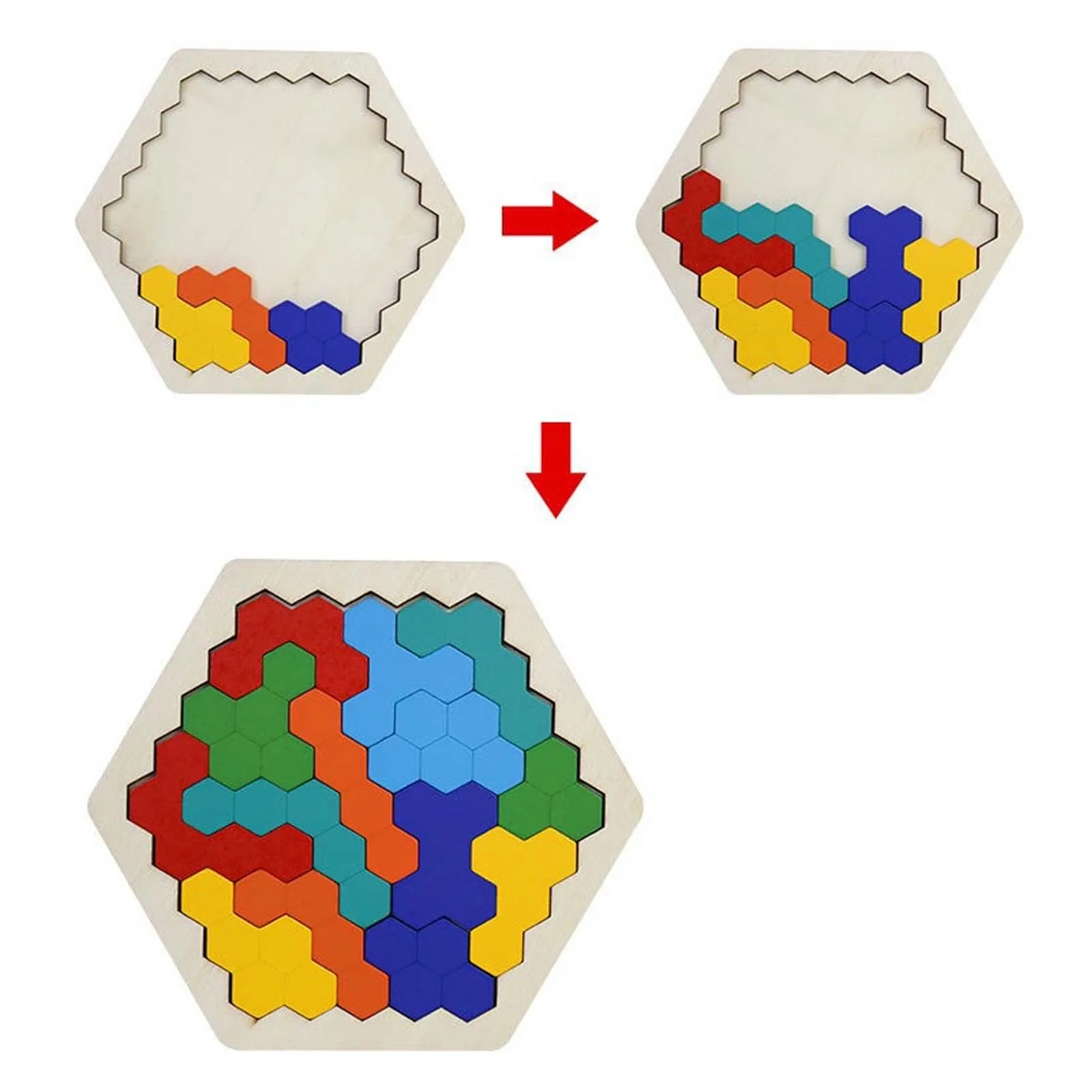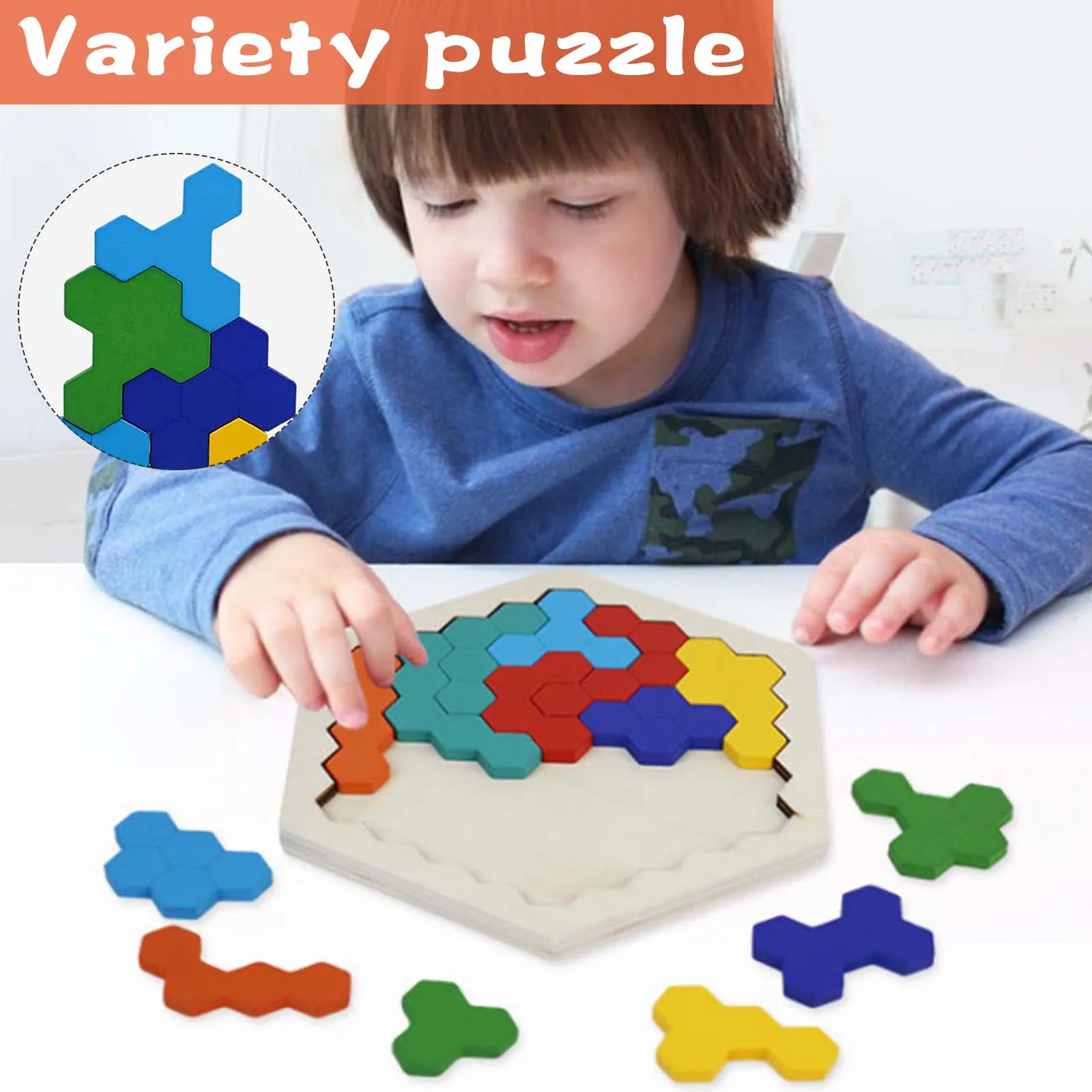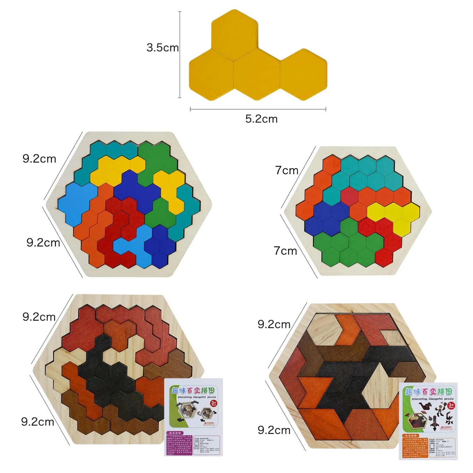Сложные и веселые: бесконечные возможности делают эту деревянную шестигранную пазл отличной игрушкой для обучения способности детей воображению, решению проблем, творческому мышлению и координации глаз.Природа и нетоксичность: Эта головоломка с шестиугольниками обеспечивает вашим детям более безопасный выбор. Он изготовлен из 100% натурального дерева, который прочный, без острых краев и запаха. Экологически чистая краска на водной основе обеспечивает яркие цвета и нетоксичное качество. Из-за высокого качества древесины и краски, это не принесет потенциального вреда вашему малышу.Идеальный подарок для всех возрастов: эта деревянная Шестигранная головоломка не только подходит для детей, но и для взрослых.Вы можете наслаждаться им дома, в машине, на лужайке и везде, где вам нравится, с семьей и друзьями. Отличная игрушка для поощрения родителей к решению проблем вместе с детьми и развитию отношений между родителем и ребенком.Это идеальный подарок на день рождения/Рождество/День Благодарения/Новый год для детей, взрослых и пожилых людей.